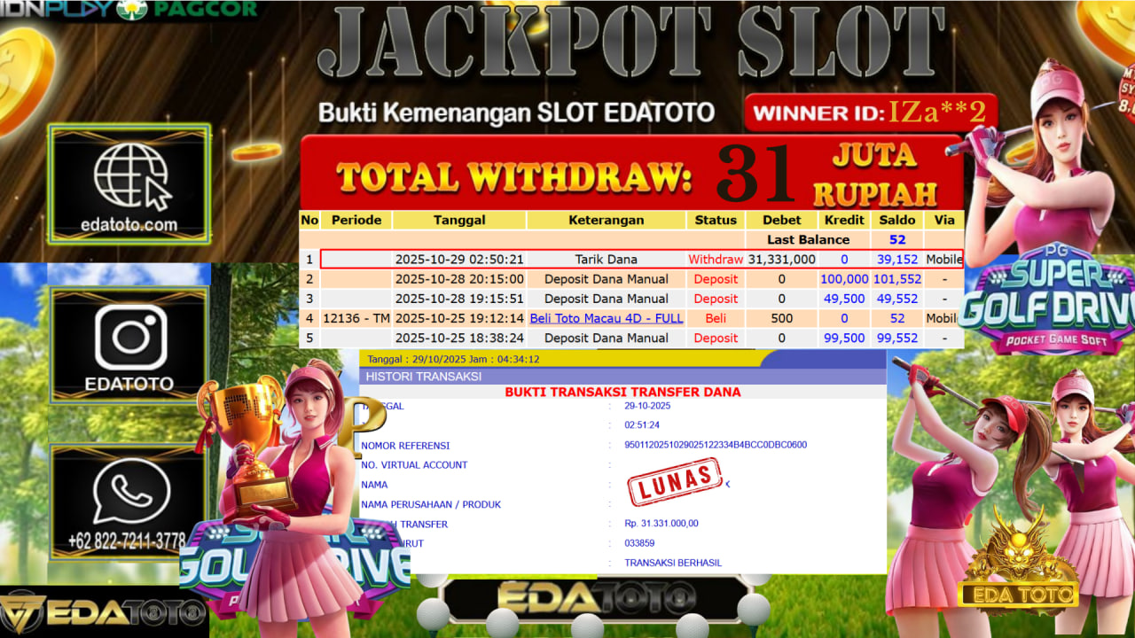 Selamat Kepada Pemilik user ID : IZa**2 Hari/Tanggal : Rabu / 28, Oktober 2025 Jackpot : Rp. 31.331.000 JT Permainan : Super . . .